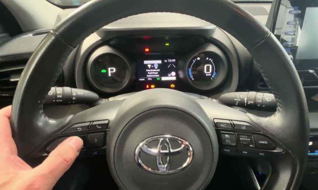 W nowszych Aygo X procedura jest inna – odbywa się przez menu na kierownicy lub wyświetlaczu.