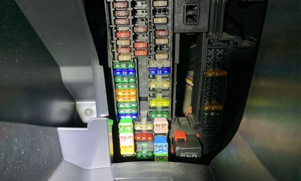 - SB5: 15 A – dźwignia DSG / mechatronika