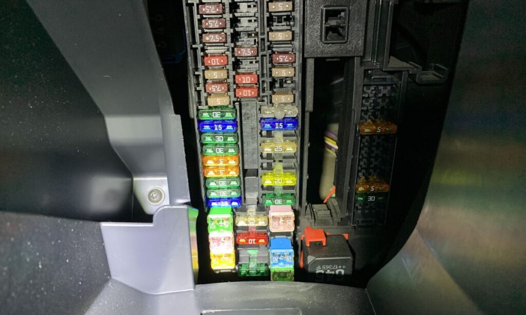 - F12 – 40 A: prawe oświetlenie zewnętrzne (LED Matrix)